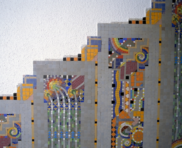 Détail de la mosaïque murale de la cage d'escalierImmatriculation