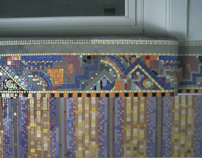 Détail de la mosaïque murale de la cage d'escalierImmatriculation