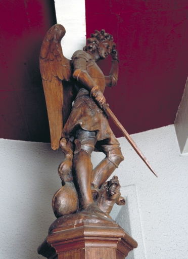 Saint-Michel terrassant le dragon, figure d'amortissement du noyau de l'escalier de la tourImmatriculation