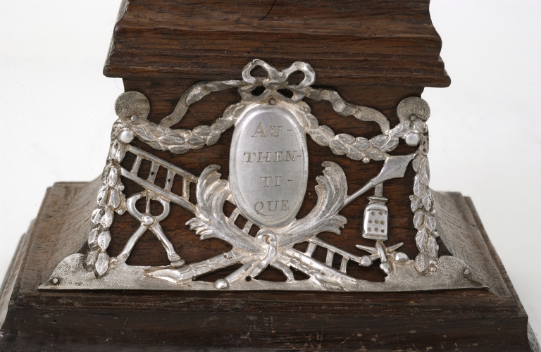 Croix-reliquaire : détail de la partie inférieureImmatriculation