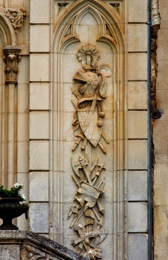 Façade antérieure, détail des armoiries sculptéesImmatriculation