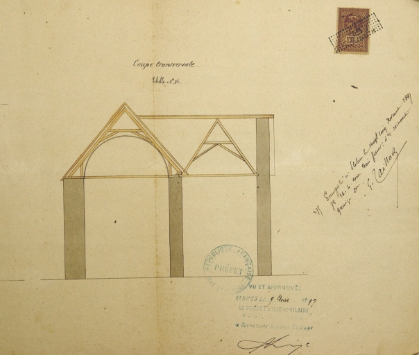 Elévation intérieure de la nef : coupe tranversale levée en 1897Immatriculation