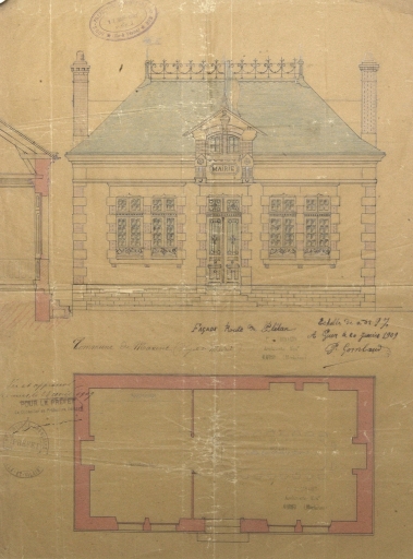 Plans au sol et en élévation dressés en 1909 par l'architecteImmatriculation