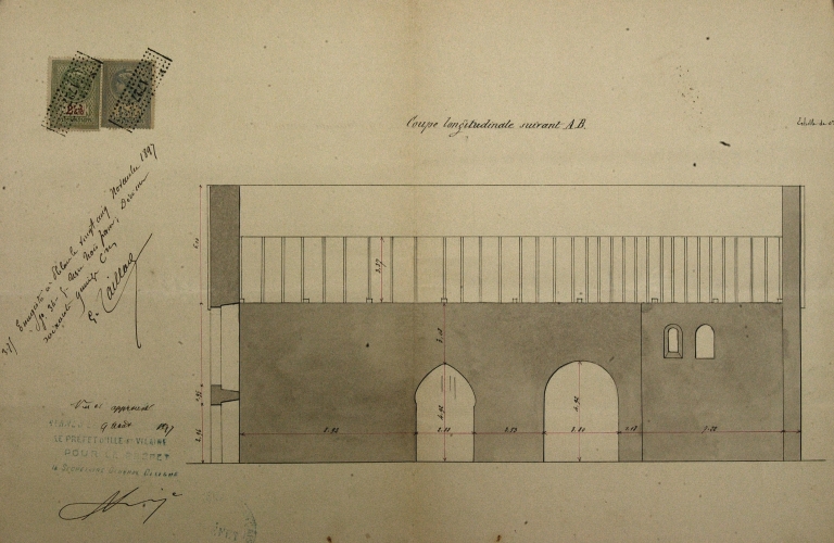 Elévation intérieure nord : coupe longitudinaleImmatriculation
