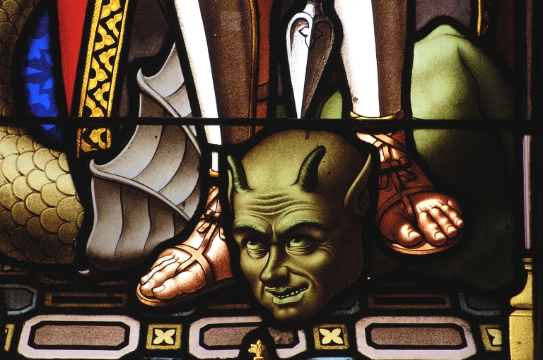 Verrière de la baie 2, lancette montrant saint Michel : détail du démonImmatriculation