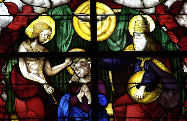 Verrière de la baie 12 : Couronnement de la Vierge,