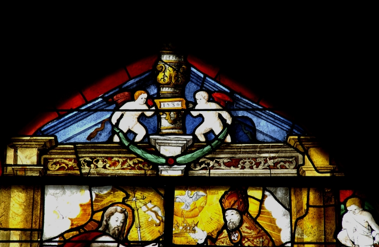 Tympan, partie supérieure : angelots et date : 1536Immatriculation