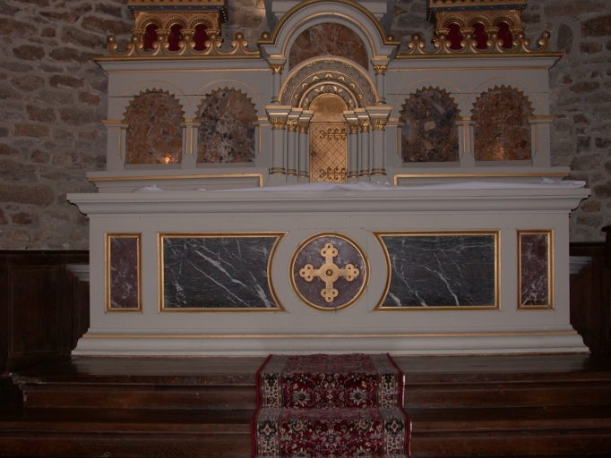Ensemble du maître-autel : autel, tabernacle, exposition, gradin d'autel, 3 degrés d'autel (Tressé fusionnée en Mesnil-Roc'h en 2019),