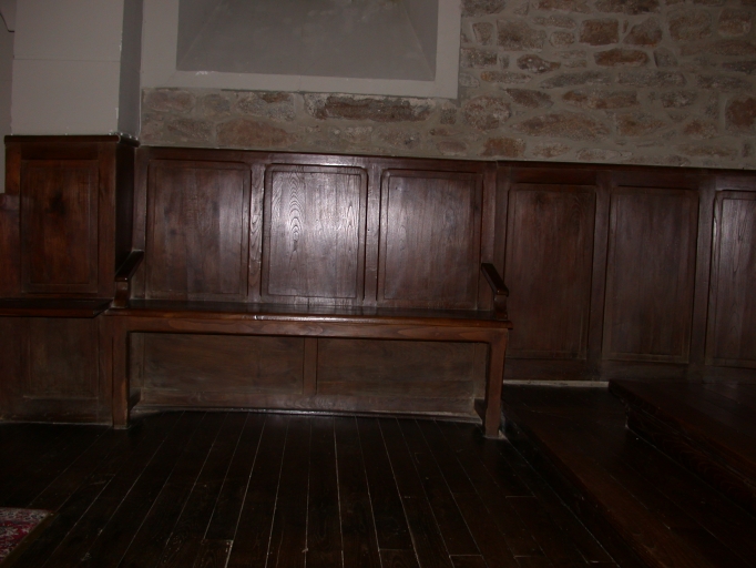 Décor de choeur : lambris de demi-revêtement, banc de choeur (Tressé fusionnée en Mesnil-Roc'h en 2019),