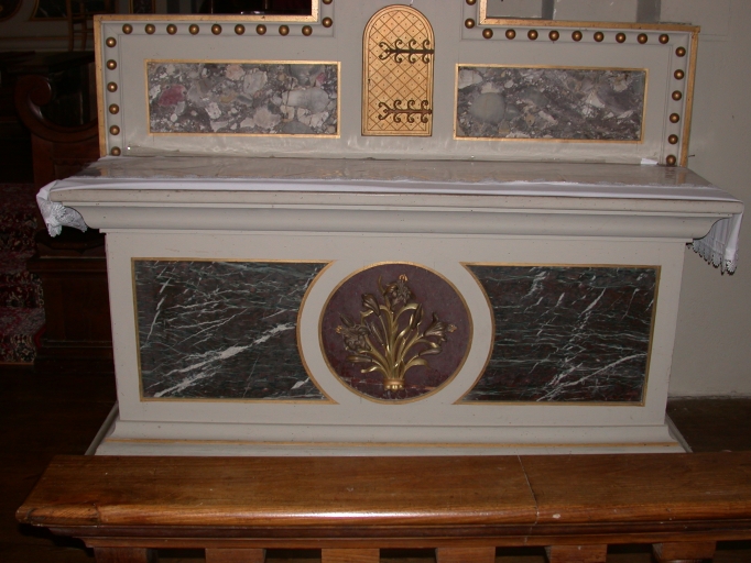 Ensemble des autels de la Vierge et de saint Joseph : 2 autels, 2 tabernacles, 2 gradins d'autel (Tressé fusionnée en Mesnil-Roc'h en 2019),