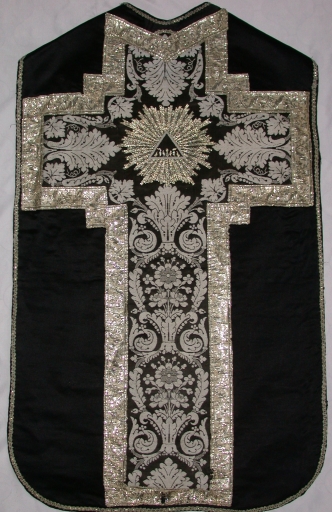 Ornement noir 1 : chasuble, étole, manipule, voile de calice (Tressé fusionnée en Mesnil-Roc'h en 2019),