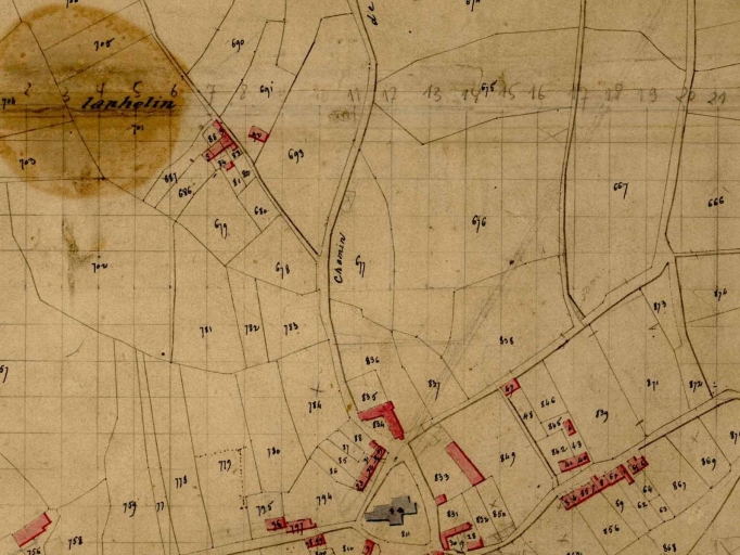 Extrait du cadastre de 1826 ; hameau en haut à gauche de l'imageImmatriculation