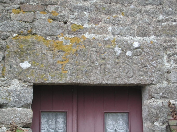 Détail : façade sud, linteau de le porte d'entréeImmatriculation