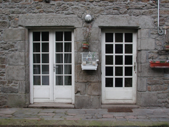 Détail : portes jumelées gravées 'M:IV:LECORVASIER' et 'IHS / 1637'Immatriculation