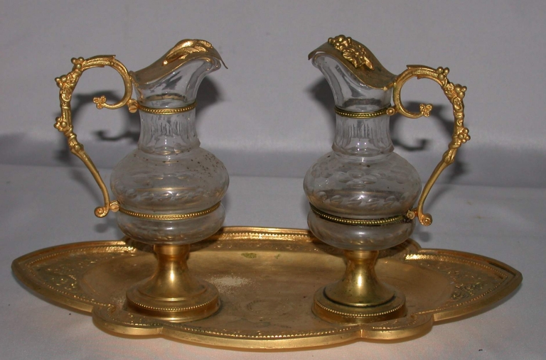 Chapelle d'orfèvrerie 2 : calice, patène, clochette, 2 burettes et leur plateau,