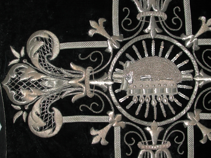 Ornement noir 2 : chasuble, bourse de corporal, étole, manipule, voile de calice (Saint-Pierre-de-Plesguen fusionnée en Mesnil-Roc'h en 2019),