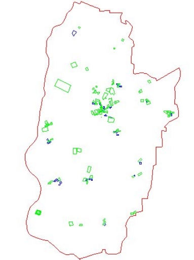 Carte des maisons et fermes recensées : en bleu, les ouvrages non documentésImmatriculation