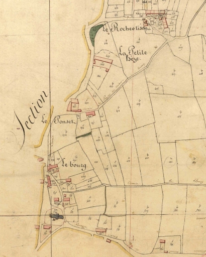 Extrait du cadastre de 1826 (feuille A2) : la partie est du villageImmatriculation