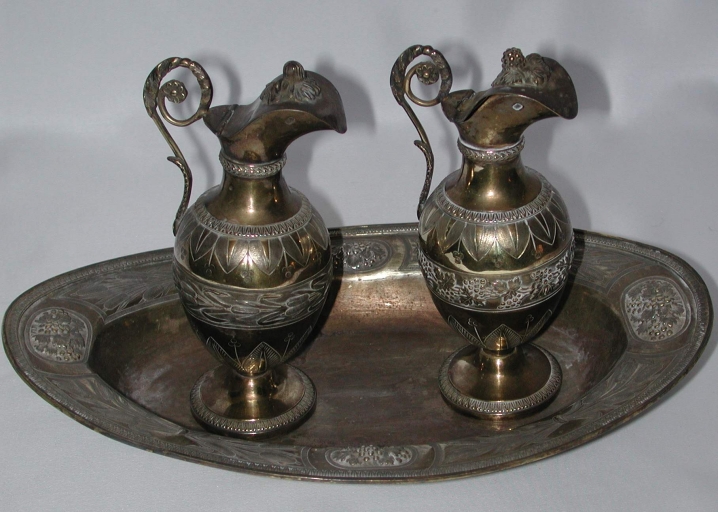 2 burettes et leur plateau (Lanhélin fusionnée en Mesnil-Roc'h en 2019),