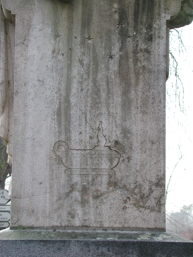 Détail : lampe à huile et étoile gravées au revers de la statueImmatriculation