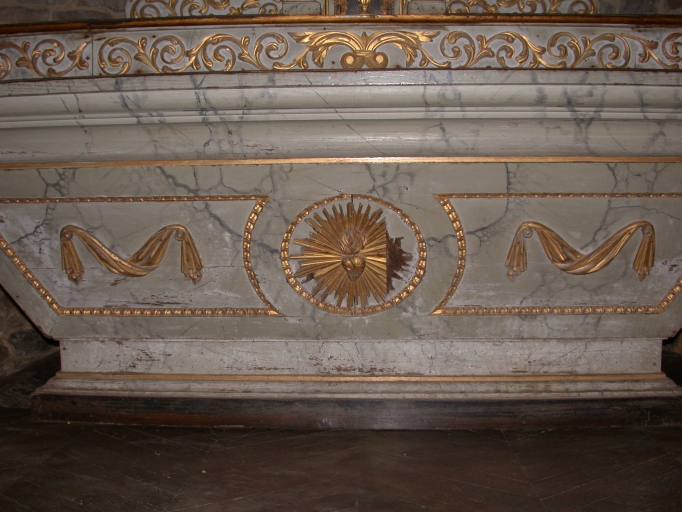 Ensemble de l'autel secondaire de la chapelle sud : autel, tabernacle, 2 gradins d'autel,