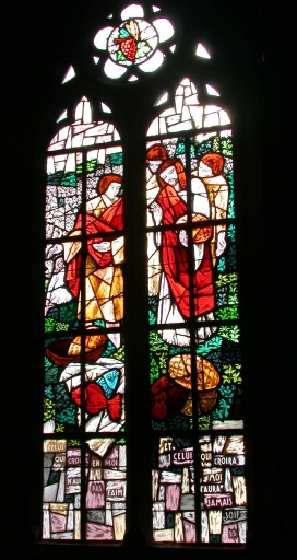 Ensemble des 8 verrières à personnages du bas de la nef (baies 20, 22 à 27, 29),
