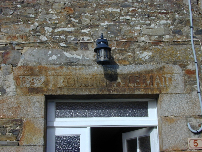 Porte d'entrée, linteau épigraphique : détailImmatriculation