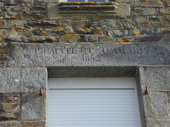 Porte-fenêtre de l'étage, linteau épigraphique : détailImmatriculation