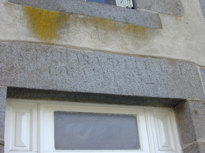 Façade sur rue, linteau épigraphique : détailImmatriculation