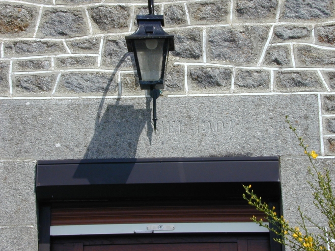 Linteau de la porte d'entrée gravé d'inscriptions : détailImmatriculation