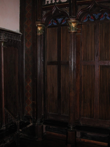 Décor de choeur : lambris de demi-revêtement, 2 stalles, 3 bancs de choeur,