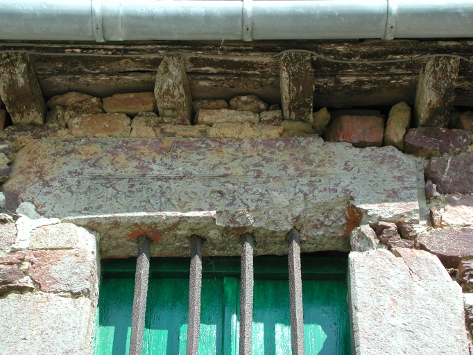 Détail : fenêtre à l'étage, linteau avec inscriptionImmatriculation