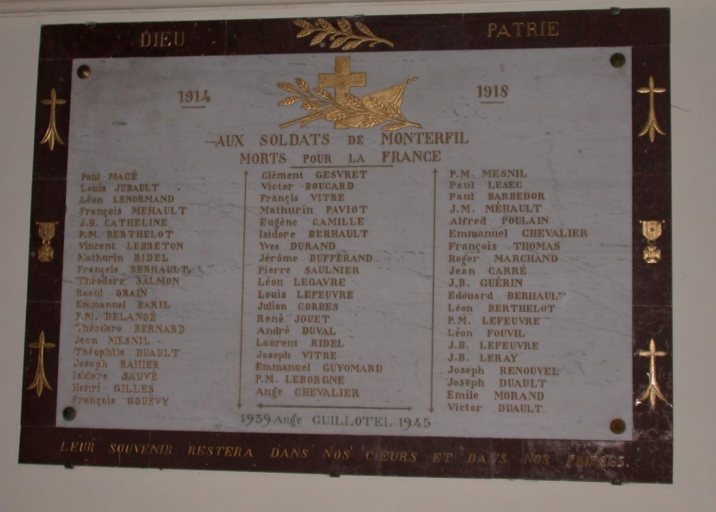 Tableau commémoratif des morts de la guerre 1914-1918,