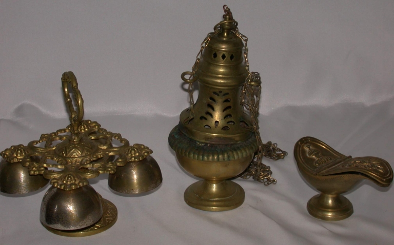 Sonnette liturgique, encensoir et navette à encensImmatriculation