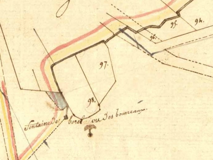 La fontaine de Borel ou des Bourreaux, près de Laimeheuc, sur le cadastre de 1823Immatriculation