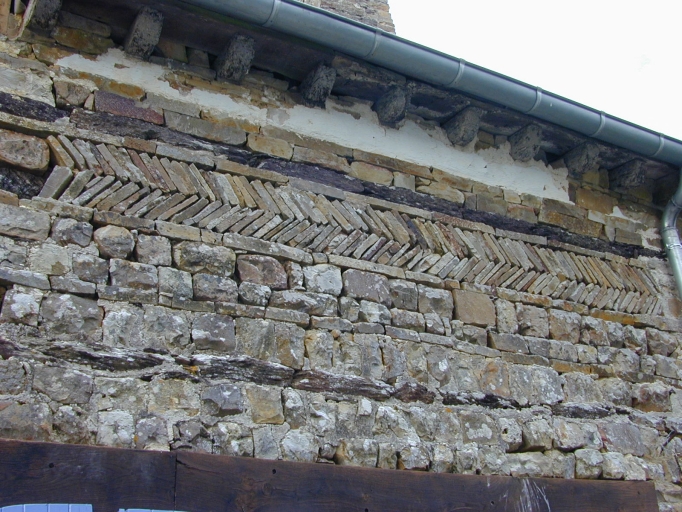 Façade antérieure, décor de parement en feuille de fougère : détailImmatriculation