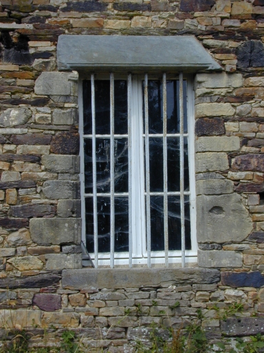 Logis, façade antérieure, fenêtre de la salle : détailImmatriculation
