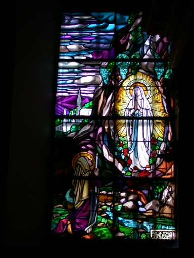 Verrière à personnages de la baie 1 : Apparition de Notre-Dame de Lourdes,