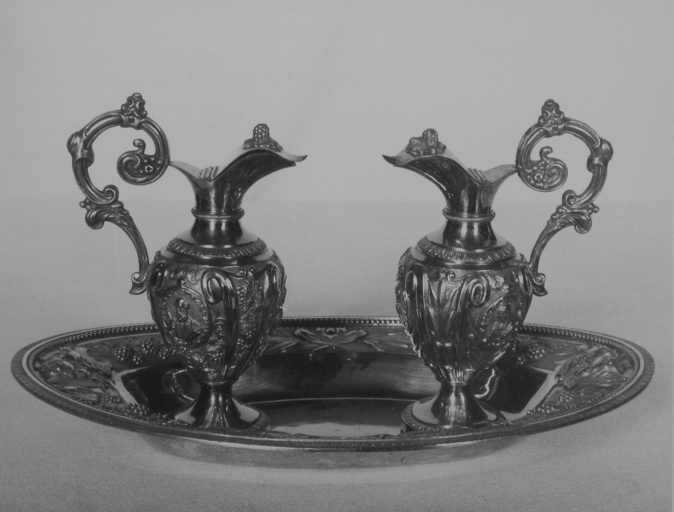 Chapelle d'orfèvrerie : calice et patène 5, plateau à burettes et 2 burettes,