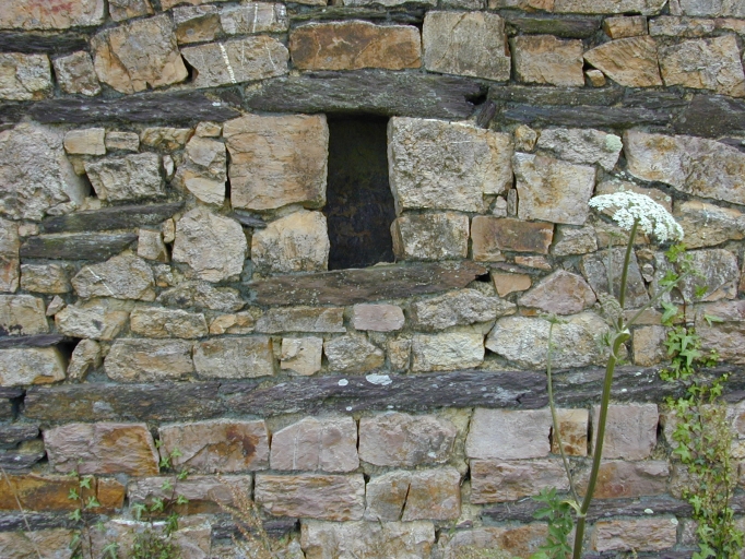 Détail : pignon nord du fournil, appareillage de schiste rouge et de grès roseImmatriculation
