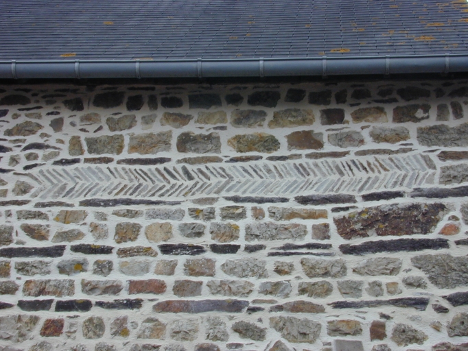 Détail : bâtiment agricole nord, appareillage en arêtes de poissonImmatriculation