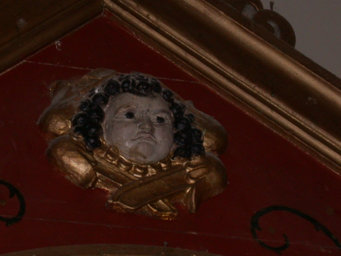 Décor du fronton du retable : angelotImmatriculation