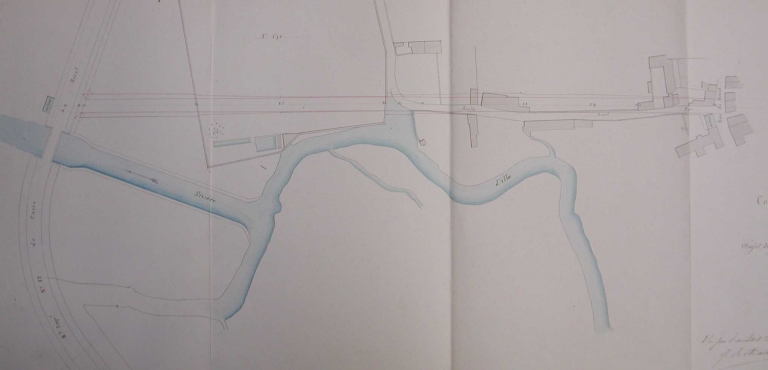 Projet de rue prolongeant la ruelle Saint-Cyr jusqu'à l'octroi du Mail, dessin illustrant le projet de Lepord, 1871 (A. C. Rennes)Immatriculation