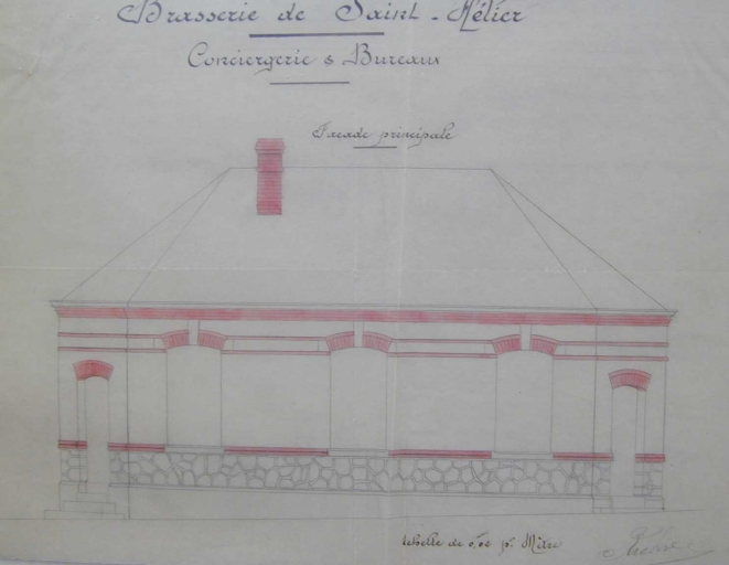 Conciergerie et bureaux constuits en 1909, élévation (A. C. Rennes)Immatriculation