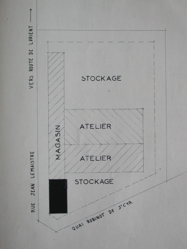 Atelier, ancienne entreprise Novello, actuellement entreprise de travaux publics ELAF, 2 rue Jean-Lemaistre (Rennes),