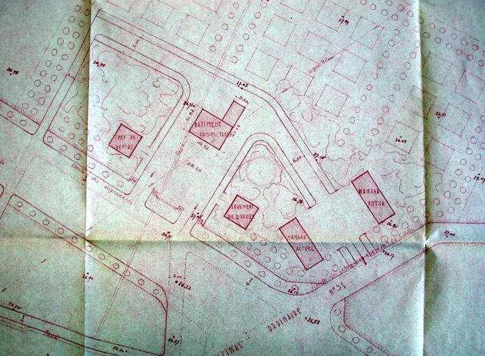 Plan de masse par Jean-Yves Deltombe, 1950 (A. C. Rennes)Immatriculation