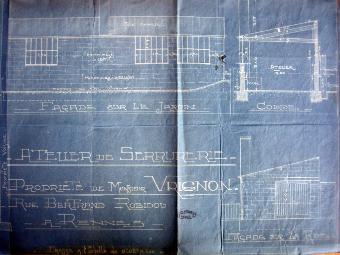 Elévations et coupe de l'atelier de serrurerie (A. C. Rennes)Immatriculation