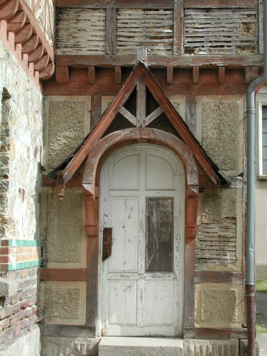 Ecole de laiterie, vue du logement, détail sur la porteImmatriculation