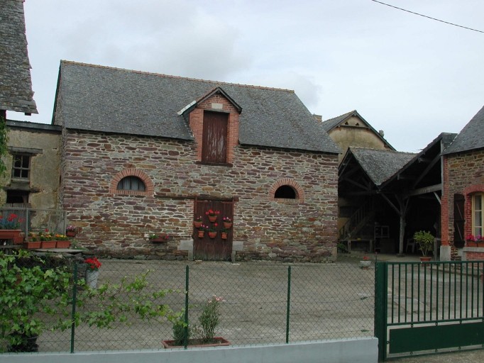 Ferme, à l'ouest du chemin, vue de l'étable reconstruite en 1910, l'ancien logis à l'arière plan et la cour couverteImmatriculation