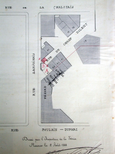 Projet de déplacement de l'escalier, 1888 (A. C. Rennes)Immatriculation